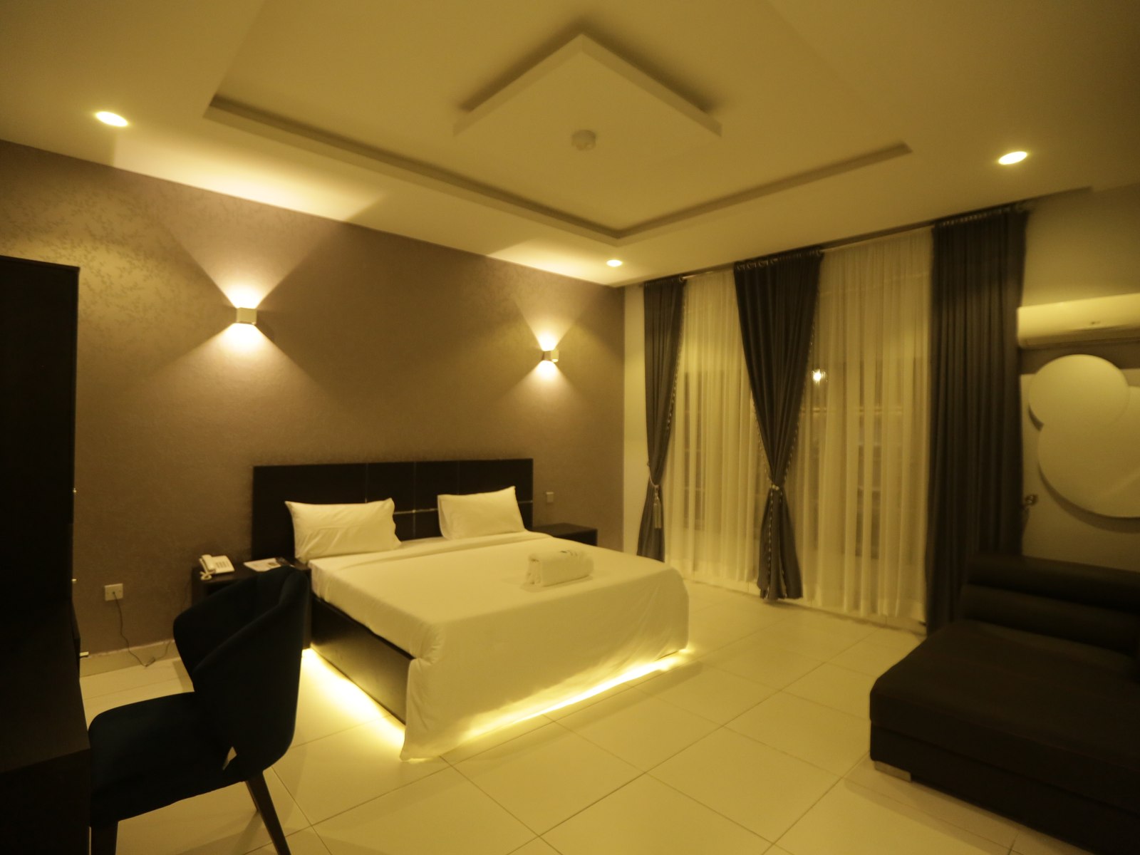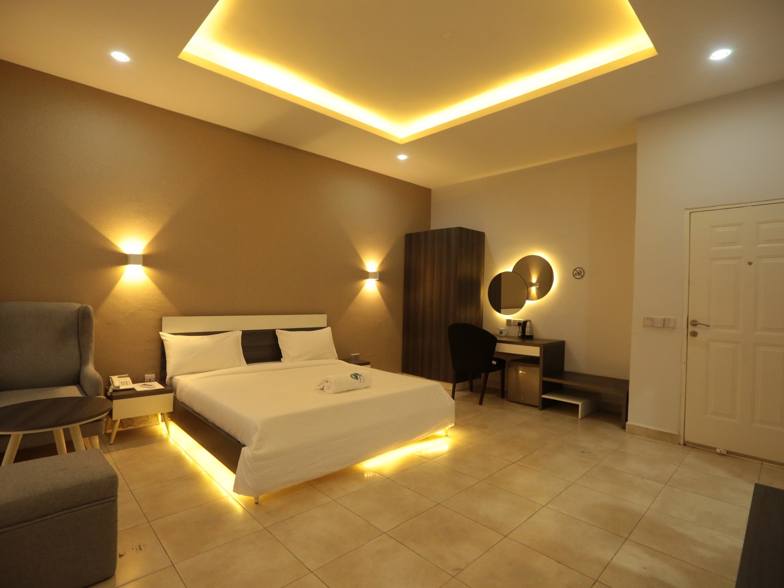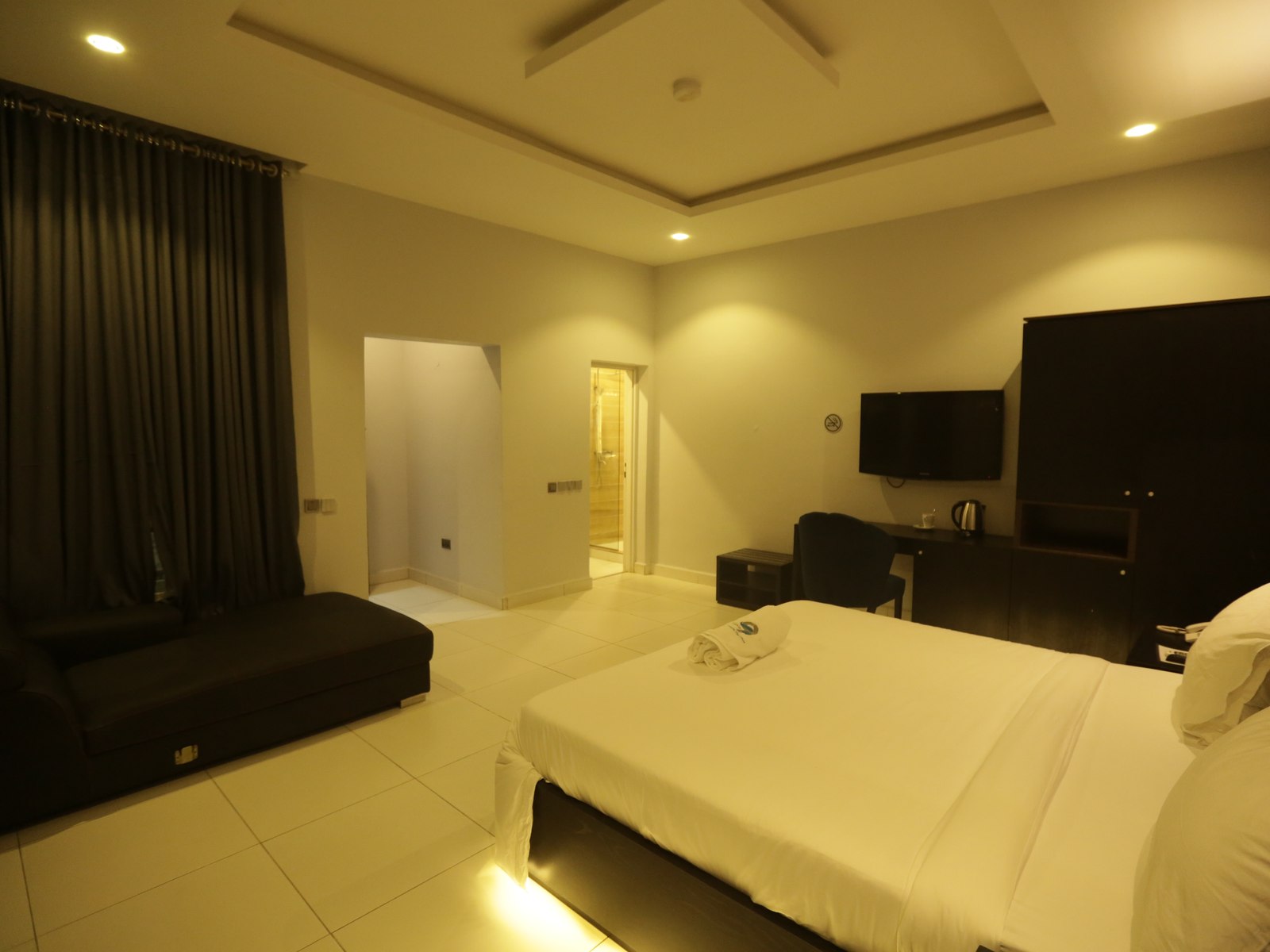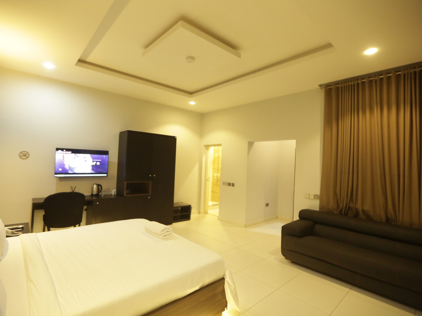 Purpose-built for professionals, the Executive Suite offers 50 square meters of well-organized space. Features include a dedicated work desk with ergonomic seating, high-speed WiFi, a comfortable queen-size bed, and a mini kitchen for extended stays.